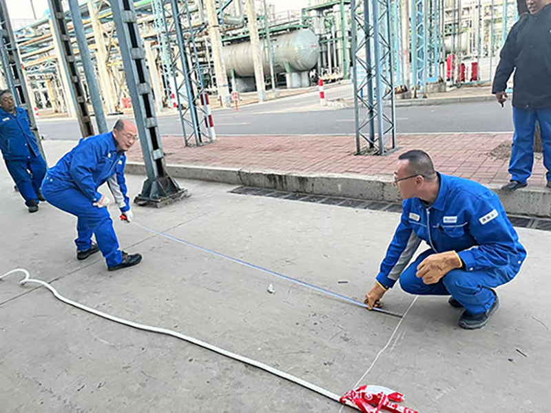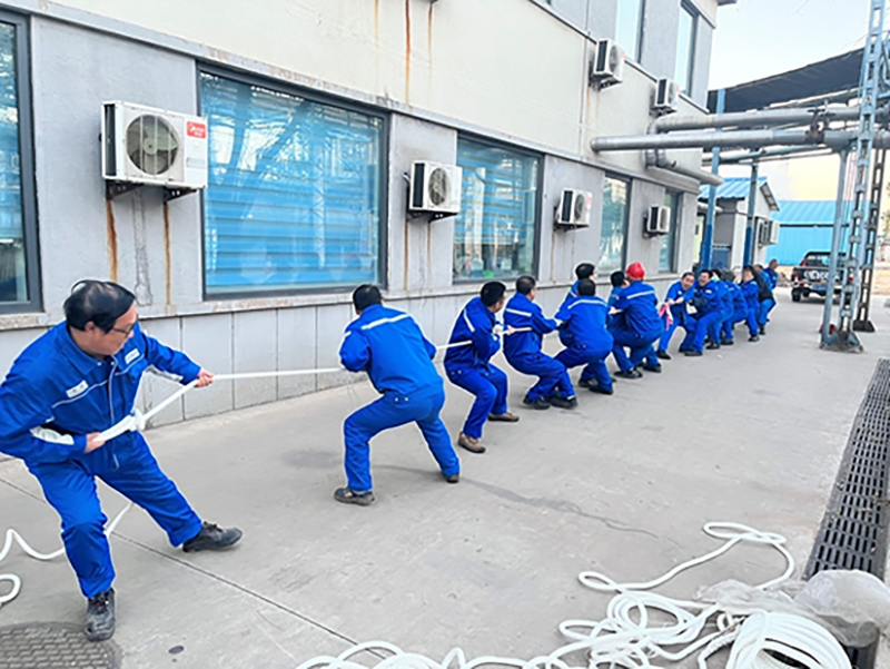 赛前,精联公司党支部书记兼总经理宋连军对本场赛事提出要求:非常时期,必须把安全放在首位。心中有了安全这根红线,在赛事的准备过程中加倍用心。首先,绳索选择结实耐用的尼龙绳。其次,参赛班员穿好防砸鞋防滑并防止崴脚,戴好手套防止手被磨破。最后,场地选择办公楼前空地,远离道路。为体现比赛的公平性,精联公司副总经理徐岩基拿出卷尺丈量中心线;为鼓舞士气,驻厂的管理人员也分别加入两个班组进行助力。
