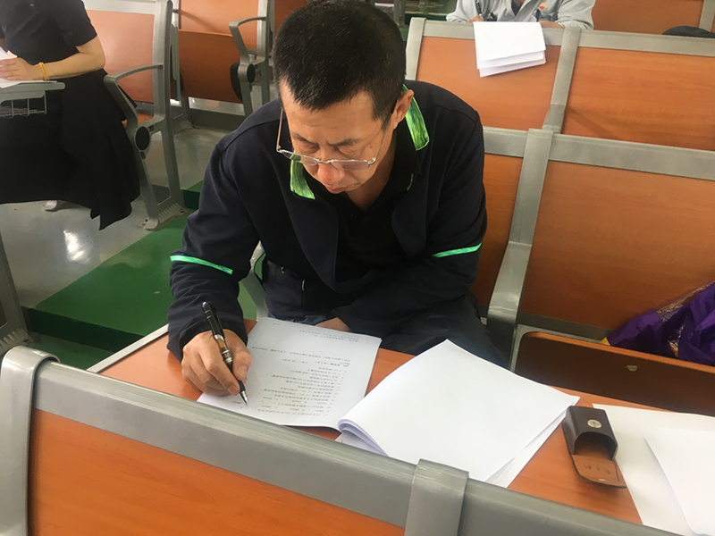 6月16日下午换岗考试在职大阶梯教室如期进行,员工们进考场前上交通讯设备及复习资料,为避免错拿物品,监考老师做到“一物一贴,一人一贴”做好标记。开考后,所有员工认真答题,年纪大的员工早早的戴好了老花镜,更有员工拿出了铅笔、橡皮和尺准备绘制流程图,个个都是摩拳擦掌有备而来,为了本次换岗考试卯足了劲儿。当看到题库外的考试题后,大家也没有紧张迷茫,而是略加思索,结合工作实际写下心中的答案,交上了一份满意的答卷。