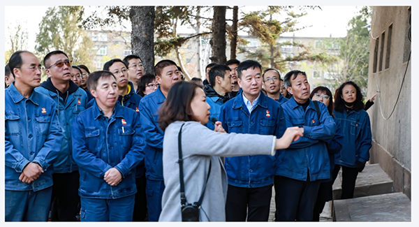 来自两个党支部的党员同志们跟随讲解员的脚步缓缓走进了宛如历史中的那一刻,配水池地势较高,靠近公路,为辽沈战役时国民党守军的屏障,国民党企图依托它与解放军顽抗到底,守军自喻“守配水池的都是铁打的汉”,1948年10月12日8时,战斗开始,东北野战军面对国民党军的嚣张气焰,喊出口号“攻配水池的都是打铁的汉”,1营在营长赵兴元的率领下,在师、团炮兵的支持下,在3营7、9连的配合下,顶住国民党军在装甲车、飞机掩护下的主体攻势,经十小时激战,攻占了配水池,战斗结束,1营伤亡600余人,只剩下5名战士和1名随军记者,战斗的激烈程度可想而知。参观遗址的党员同志们无不神情凝重,认真聆听着那份记忆,抚过战斗洗礼后的配水池,观望着墙壁上的一个个弹孔,体会着历史中将士们的那份信仰,那份坚持,那份无畏。正是对中国共产党的崇高信仰,对解放人民的迫切信念,才支撑着将士们顽强地战斗,不怕流血牺牲,真正做到了使命担当。