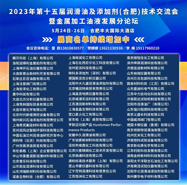 2023年5月24-26日,第十五届润滑油及添加剂(合肥)技术交流会暨金属加工油液发展分论坛在合肥隆重召开并取得圆满成功!